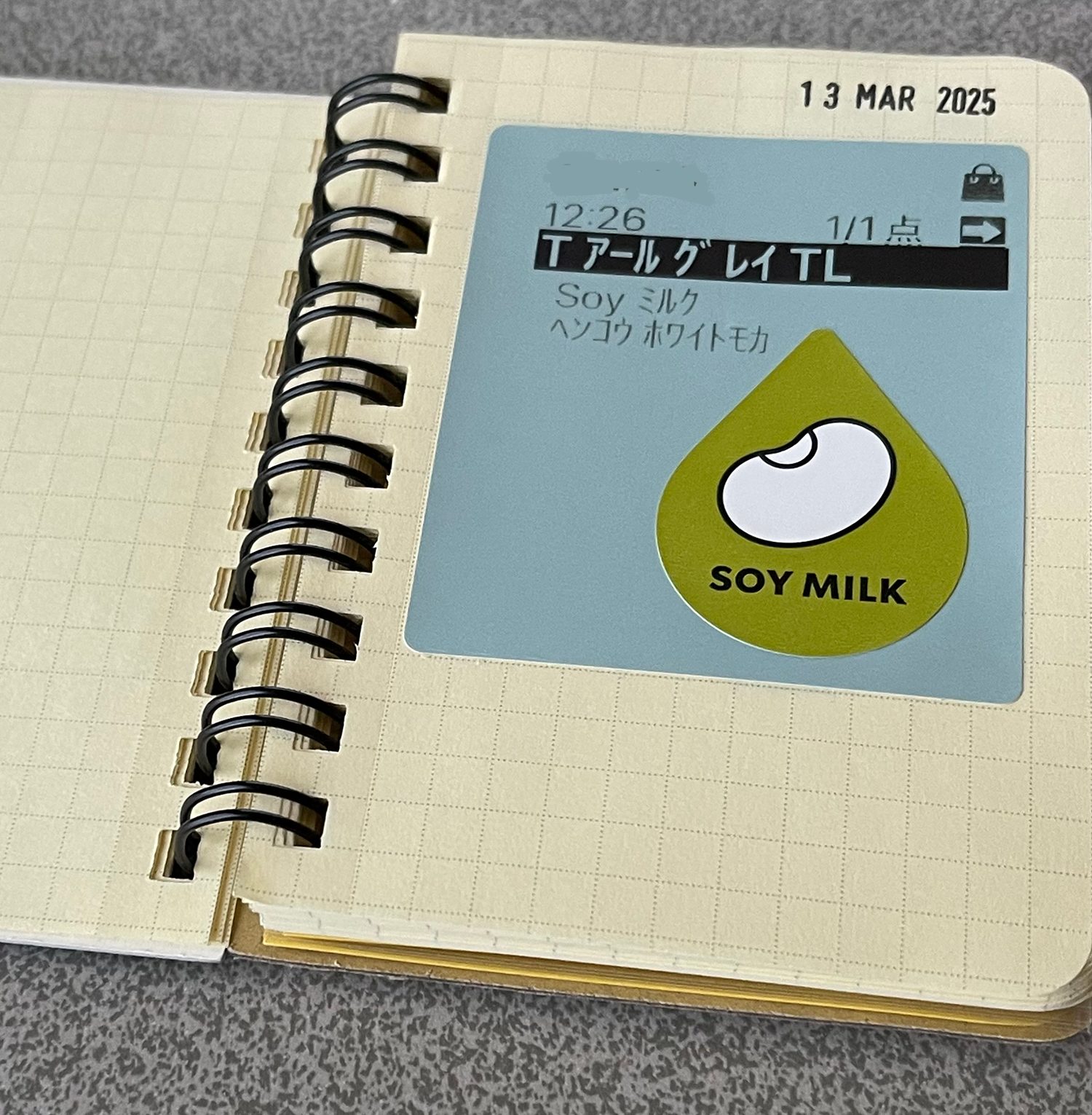 このメモ帳はカバンに入っています。ボールペンはフリクションシナジーノックを使っています。使い道としては出先でメモとかがあれば使っています。基本は捨てる用。スタバのシールとか貼ることもあるかな↓
