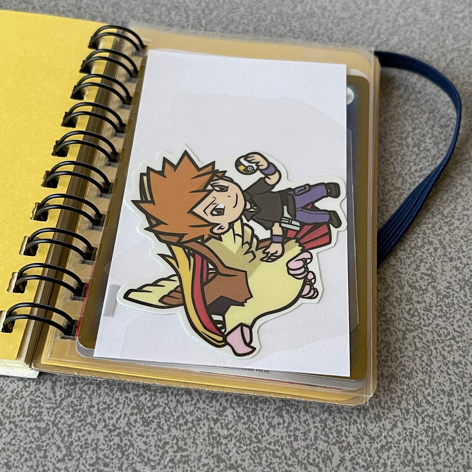 メモ帳の後ろの方にクリアのフィルムホルダーが付いているので推しを入れています。ライバルとピジョット。