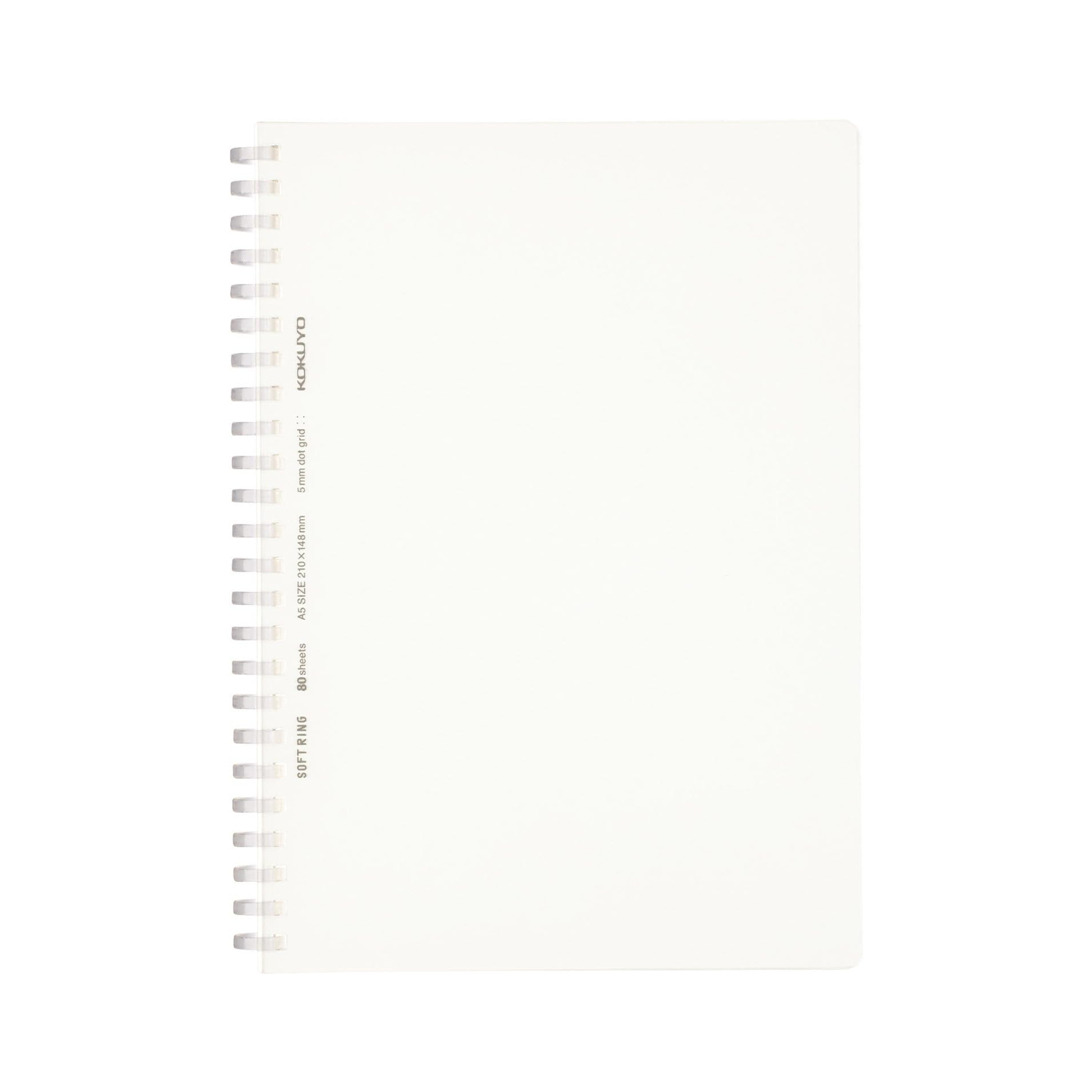 このノートは「コクヨ ノート ソフトリングノート クリア 80枚 A5 方眼ドット罫 透明 ス-SV538WT-T」です。A5サイズのドット罫線が印刷されているノートで、80枚のノートなので少しだけ分厚いです。