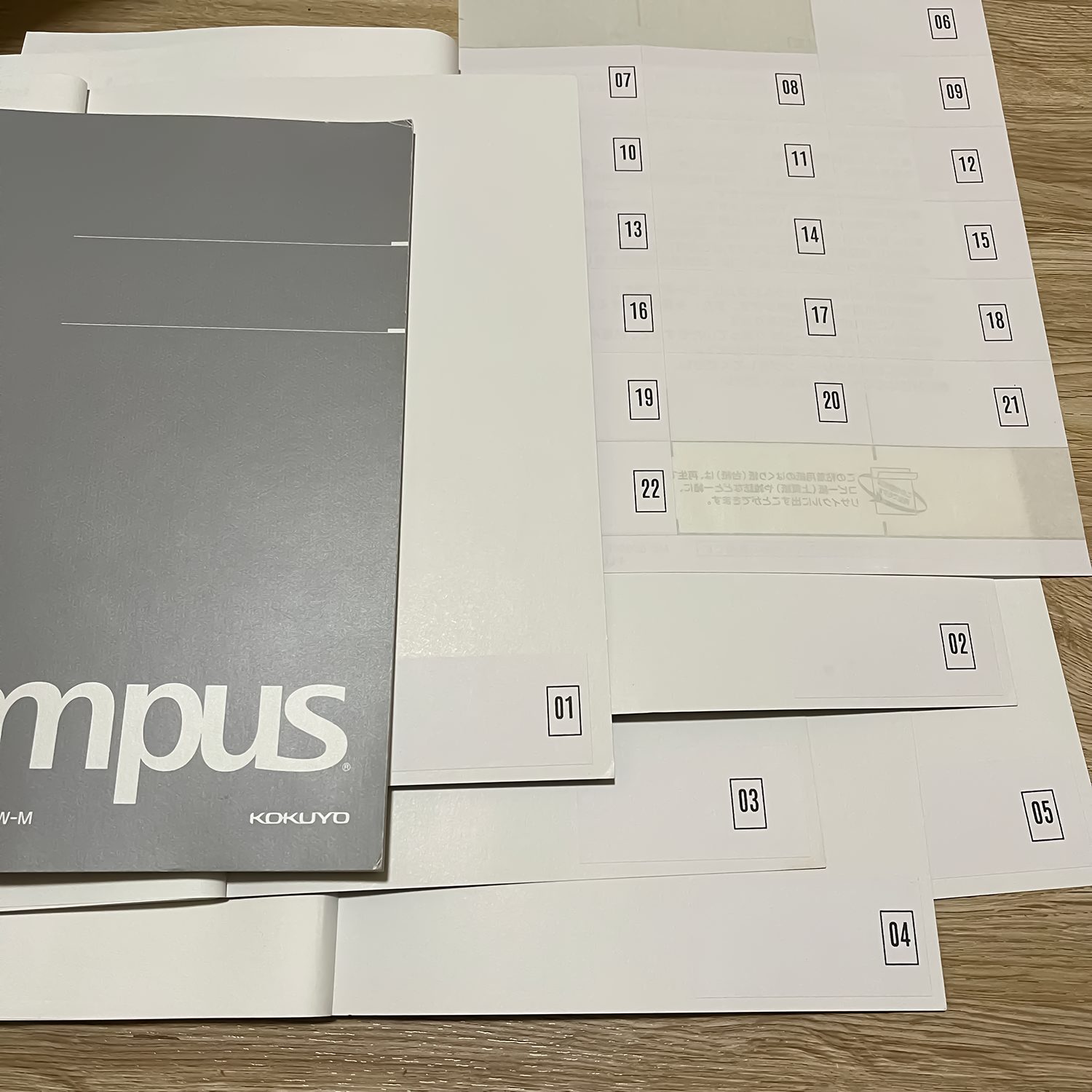 使用済みとストックは見分けがつくように↓の感じで保管しています。ラベルシールはコート紙でラベル厚は0.071mmの薄いものを使っています。プラス株式会社から発売されているME-506です。家庭用プリンターでも結構綺麗に印刷されるのと、シール部分が薄いから手帳とかでも使っています。糊付けも要らないから楽で良いですね。