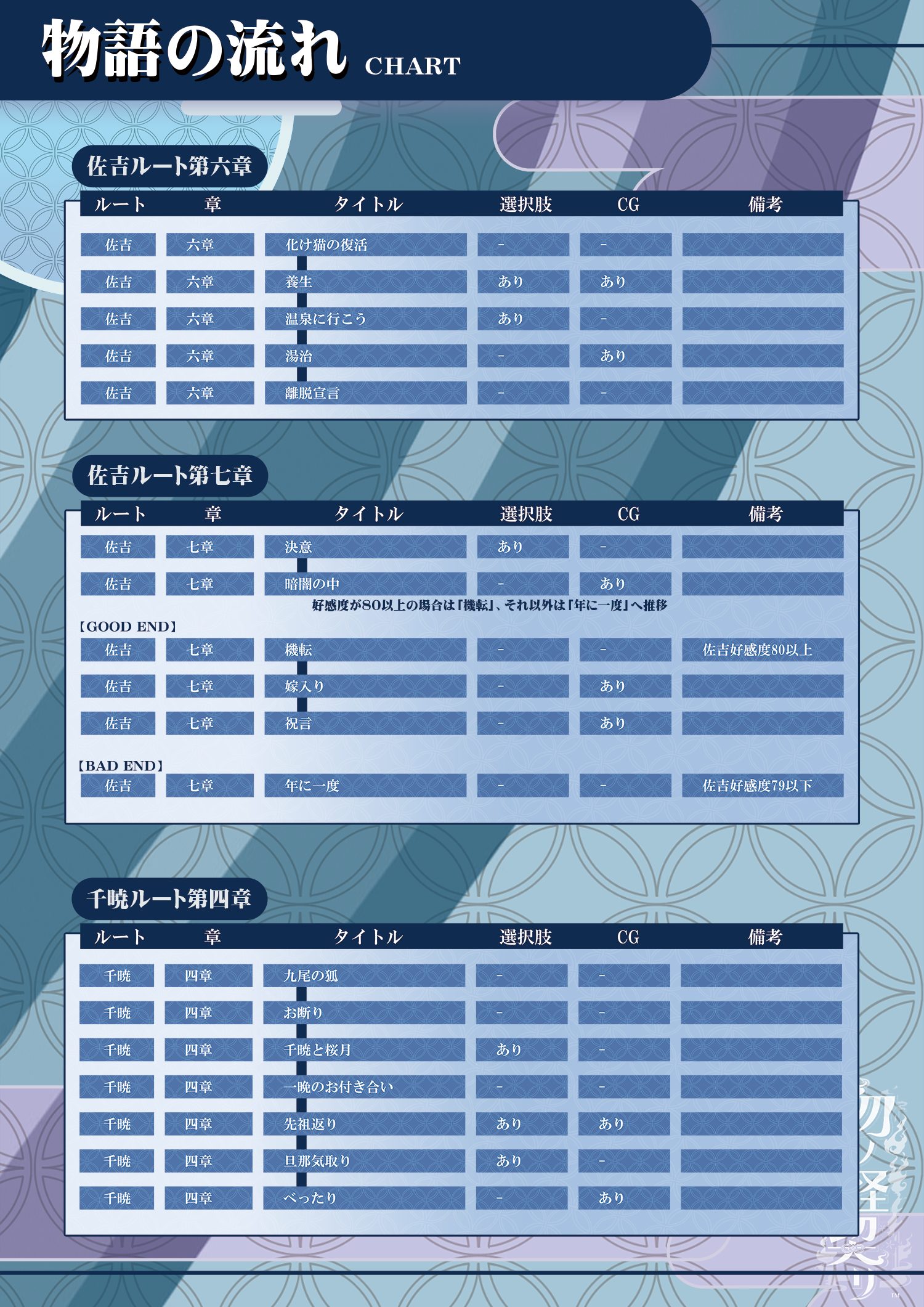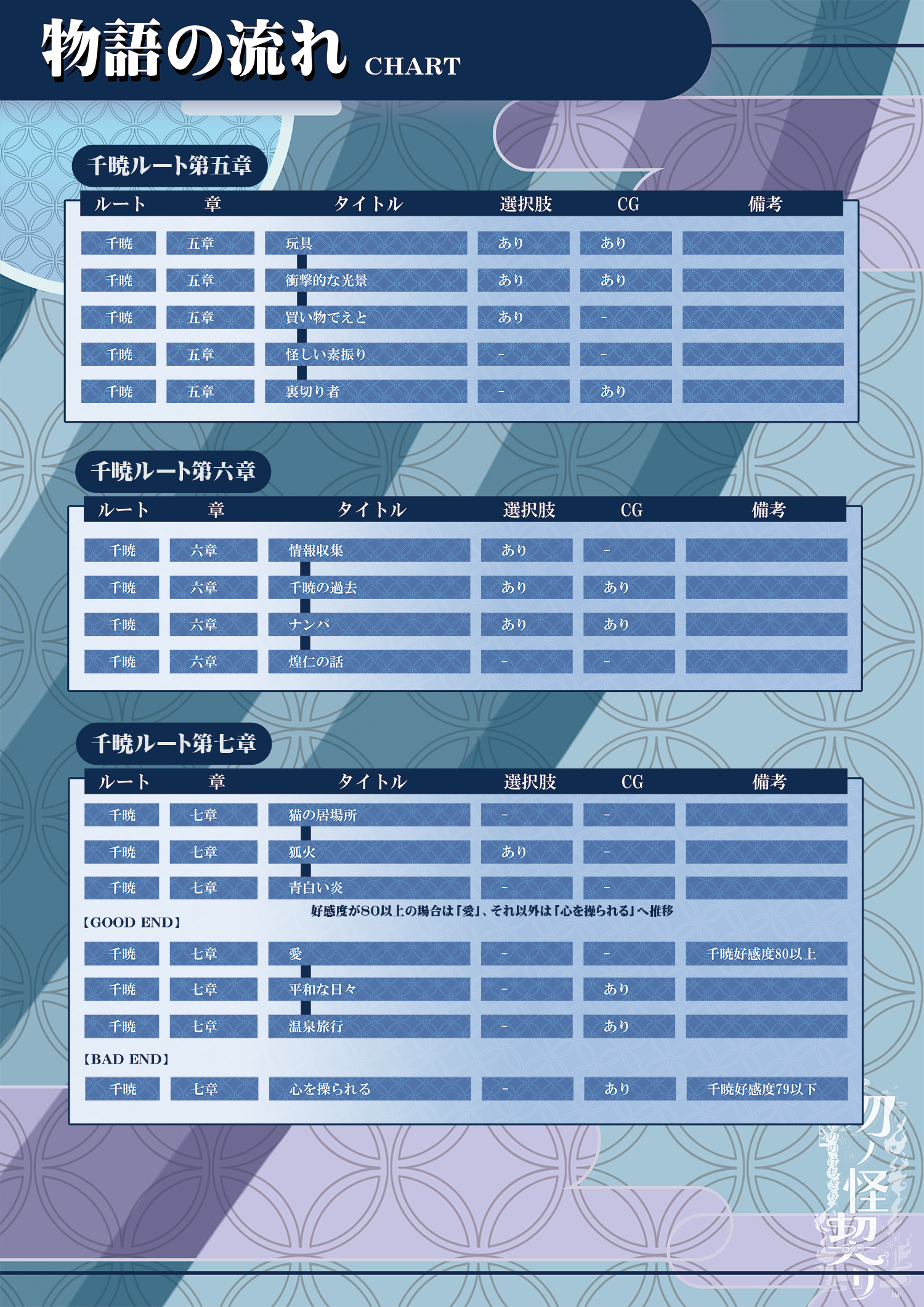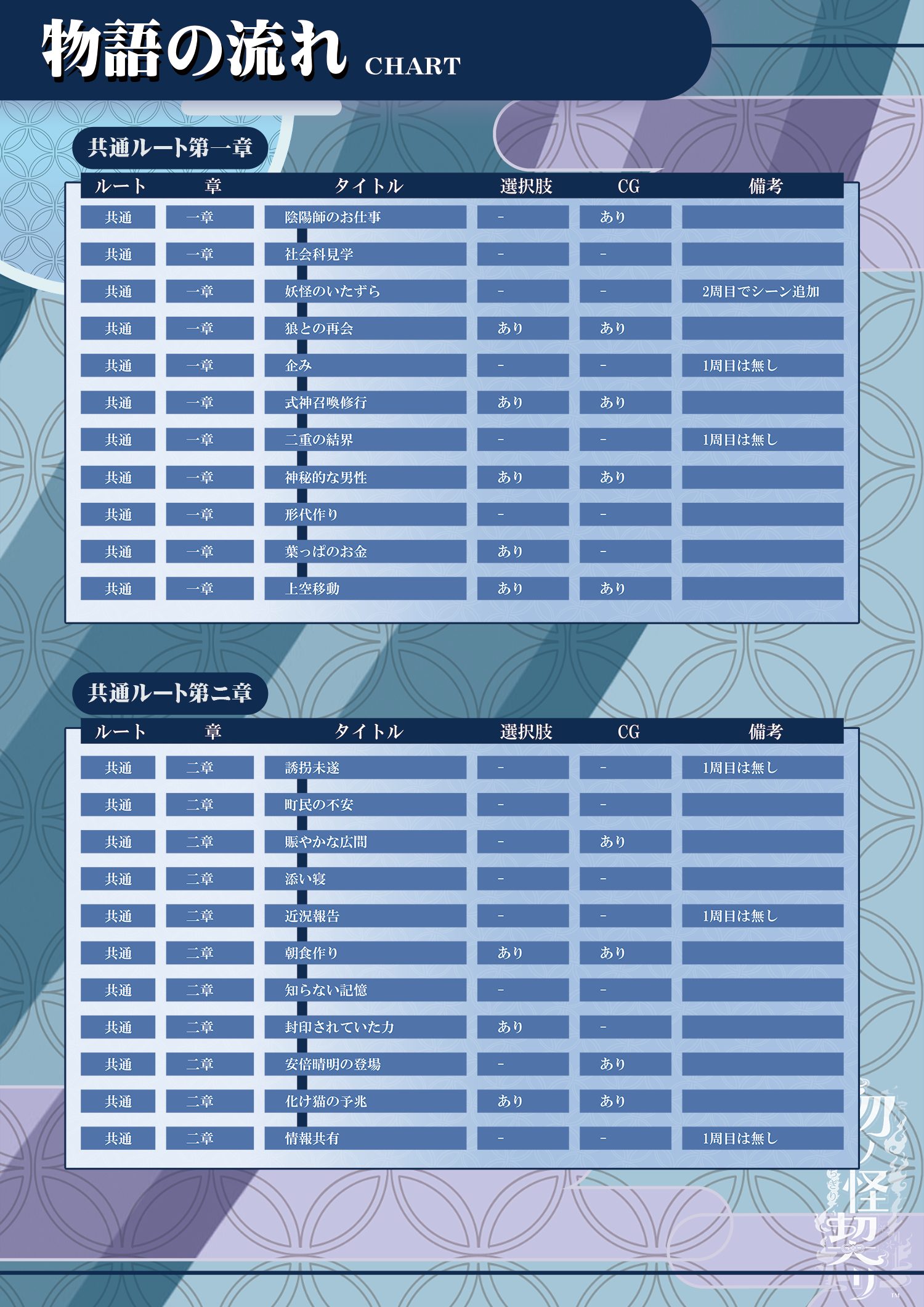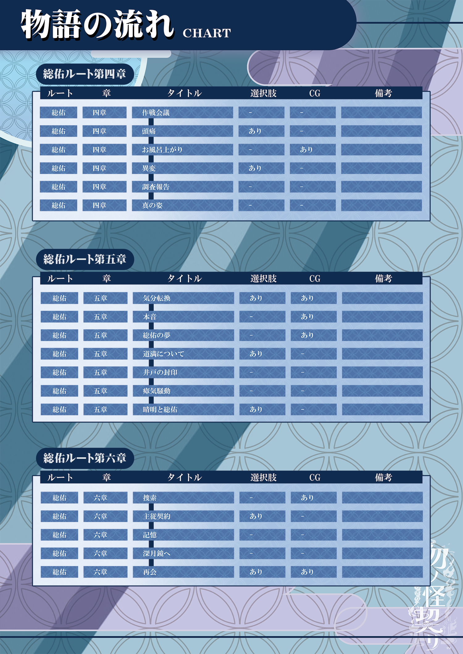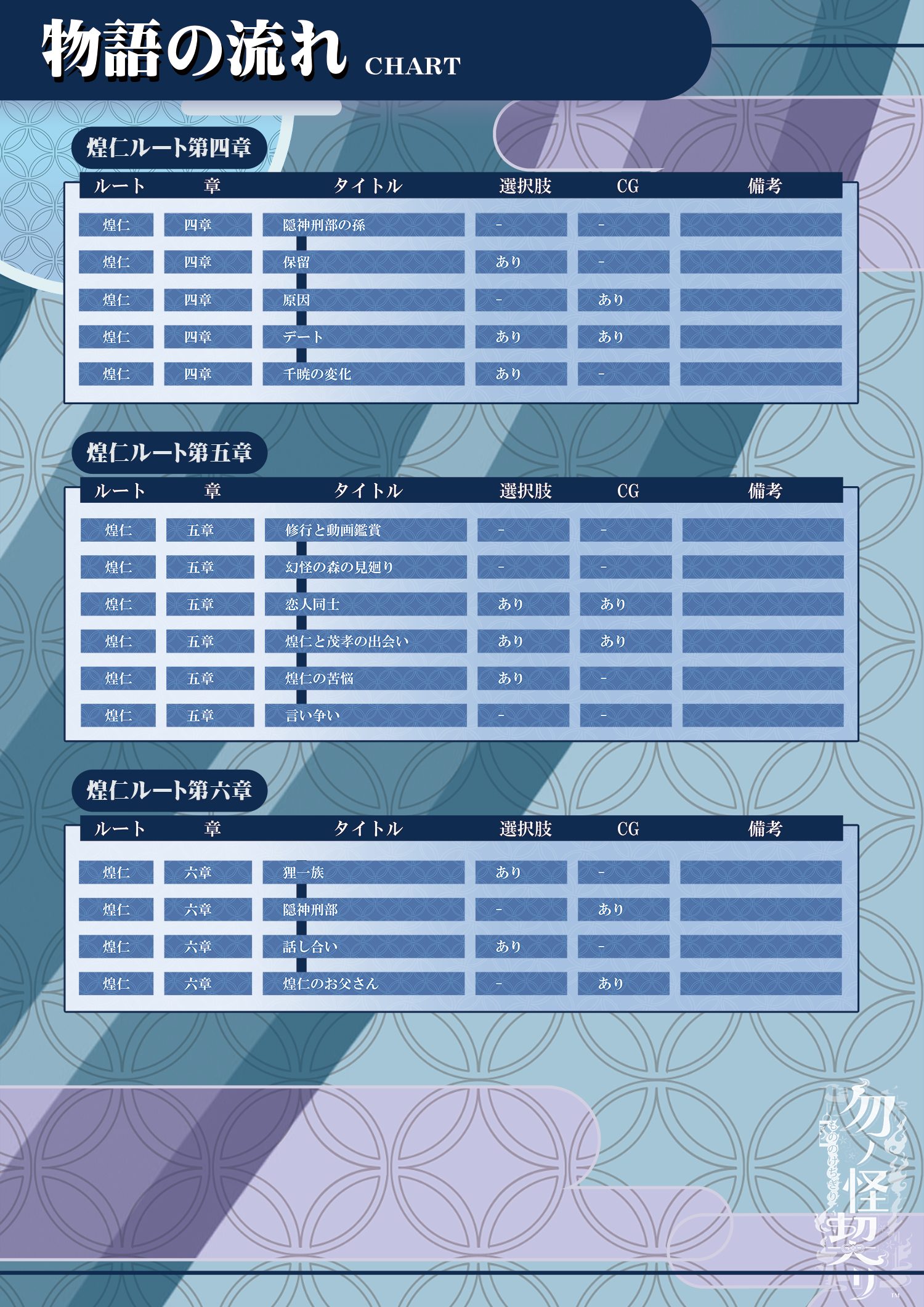 この記事は「勿ノ怪契リ」の進行チャートについてをまとめたものです。