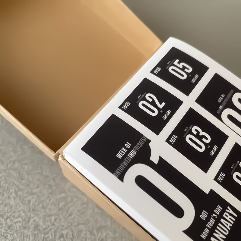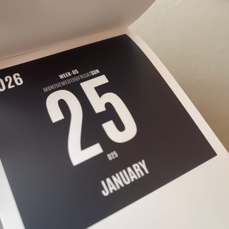 これは印刷所のサービスを利用して作った日めくりカレンダーです。六曜と月齢が無く、日付のカウントとWeekの表記があるものを探したけどそういう製品が無かったから作りました。