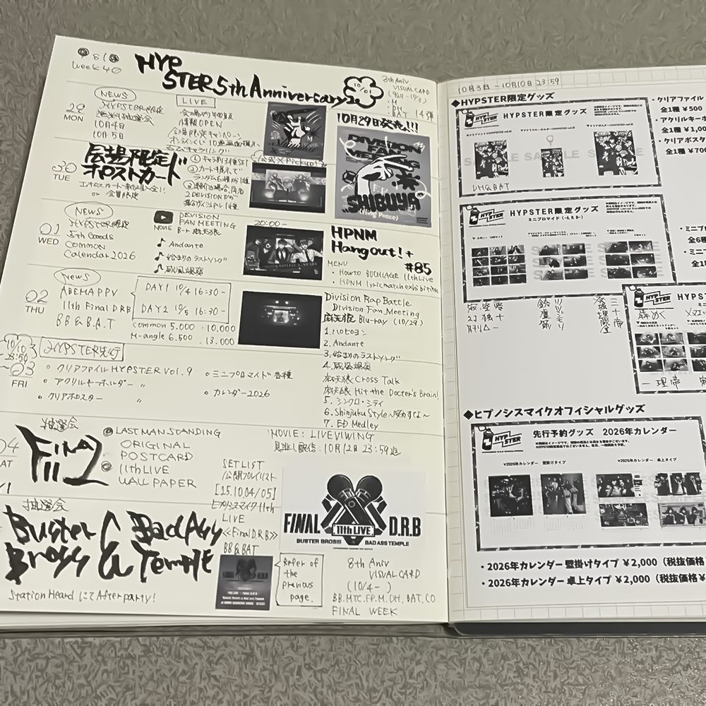 リリースの情報はA5サイズなので必然的に小さくなっちゃって悲しい😔 ってなってたのでずっとノートにまとめたかったんですよね。情報多いと下の画像みたいになってウィークリーのページをどんどん侵食してて、かなりページ嵩んでたんで、ノートにして良かった!!