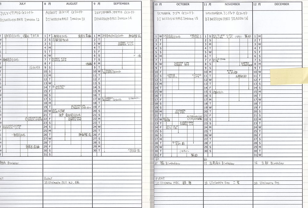 年間ページのところはイベントを俯瞰してみれるようにしようと思って遡って7月の分とかも記入してみました。