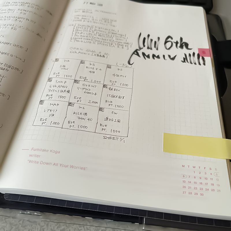 日付無視して使ってるから既に4月のページになっています。周年イベントで結構消費しちゃった感。1年もつかなー?と思ってるけど、ラグそこまで無いのでこのまま使っても余るんじゃないかと。略語とか駆使してなるべく少ない筆記を心がけるようになったからね!