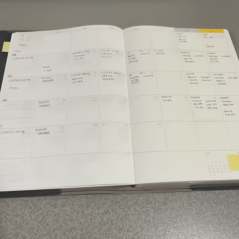 変化が無いと話題という話題が無いため、今日は4月の手帳準備のおはなし。楽しみなことを書くマンスリーはいつもの通りサッカーでぎゅーぎゅーですね。今は最も大事な時期と言える・・・