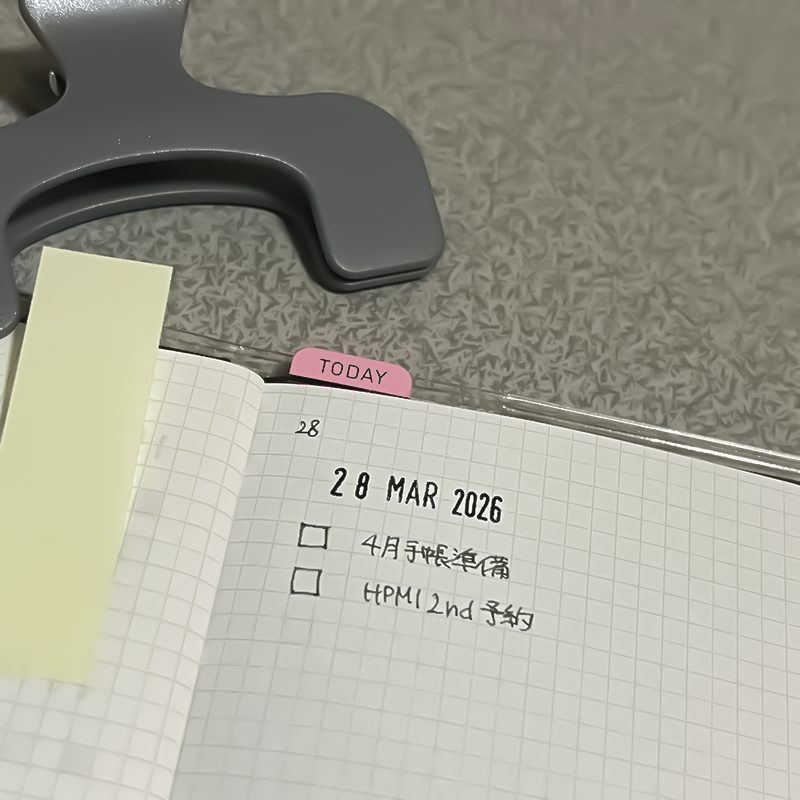 あとは、ToDo管理用の測量野帳。1/1から使い始めて現在は28ページ目になっています。細かいタスクを書くのではなく、大項目のみをリストにしているからそんなに書いてないと思うので予測では半年に1冊とかで足りるのでは無いかと。いやー、、このノート書きやすいわ。最高。